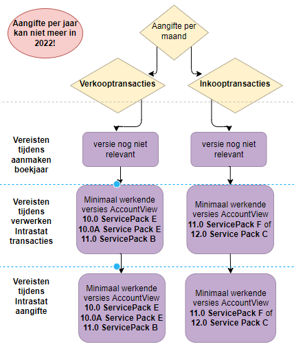 Het is van belang dat u met de juiste versie van AccountView werkt op het moment dat de transacties in het nieuwe jaar worden verwerkt. De informatie op deze pagina is niet noodzakelijk voor het aanmaken van het nieuwe boekjaar, maar wel voor het correct opstellen en indienen van de Intrastat-aangifte in het nieuwe jaar.